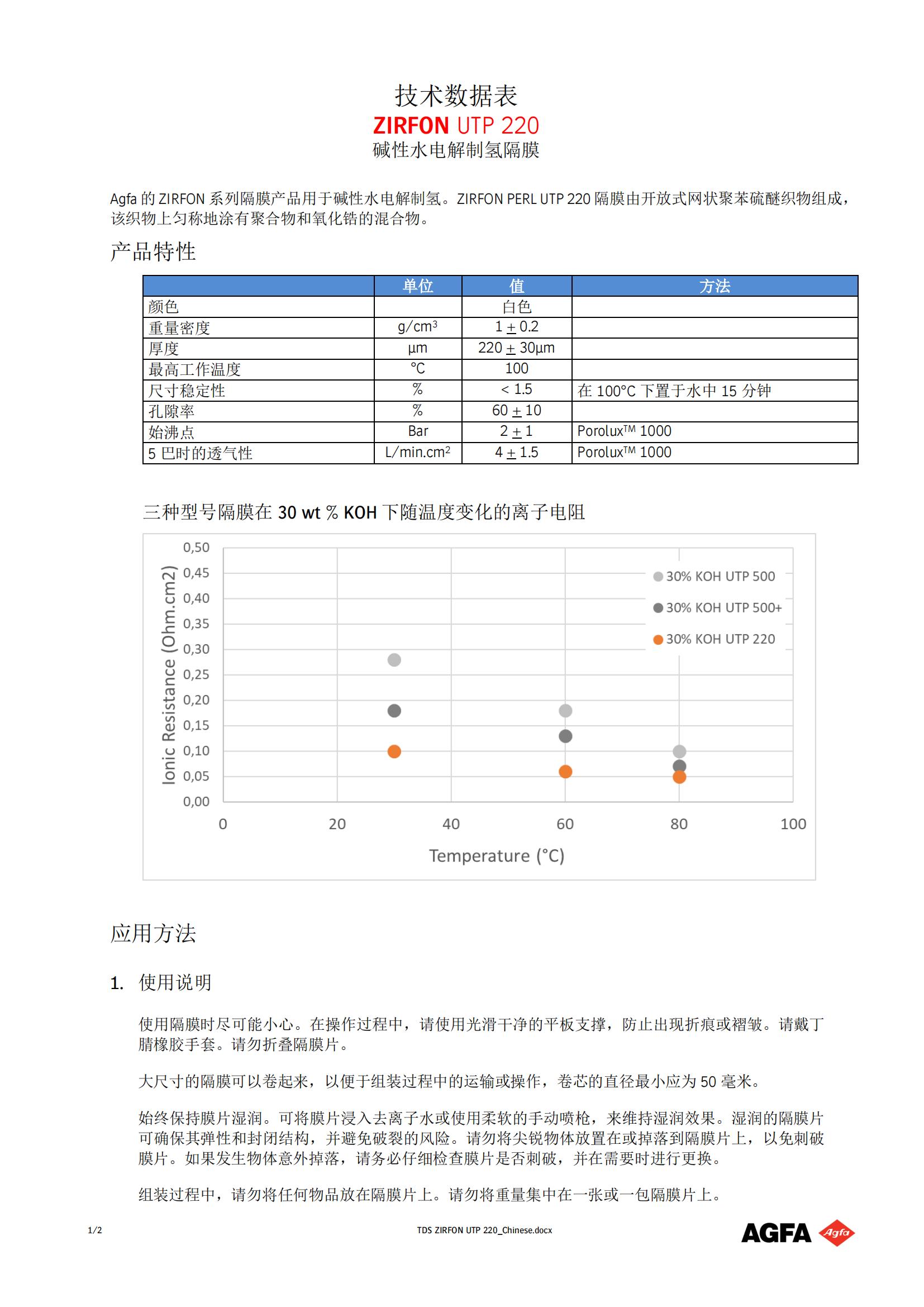 ZIRFON UTP 220 增加了AGFA產品組合中現有的 UTP 500+ 和 UTP 500 膜。正如弗勞恩霍夫研究所最近在一份報告中所揭示的那樣,它們的使用使堿性電解 (AEL) 成為最有效的制氫技術。