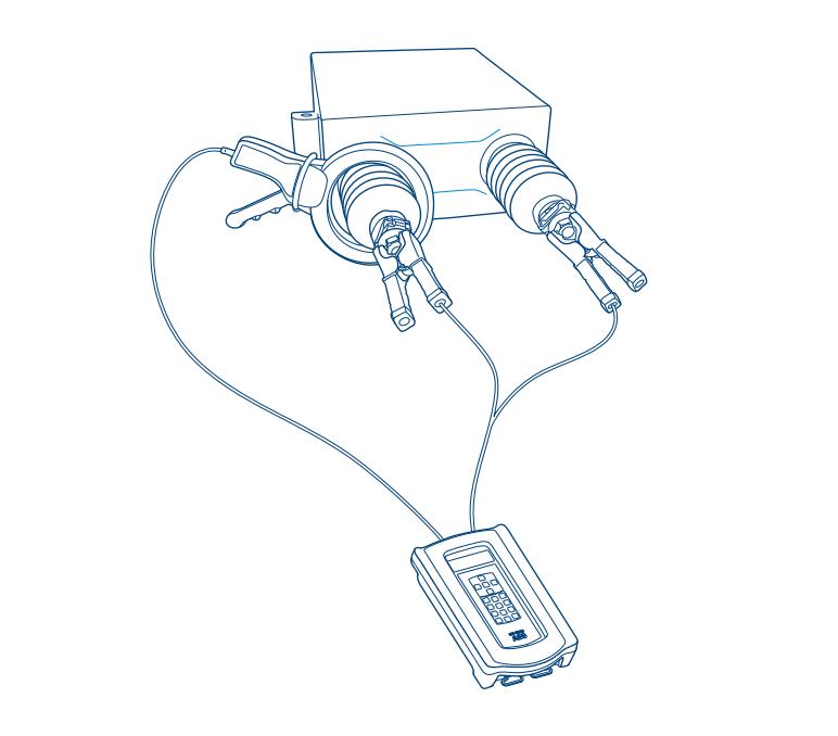 測試信號由安裝的可充電電池組或電源適配器產生,并通過兩個電壓夾連接到測量對象。測試電壓為 1.1–1.4 V。測試電流使用夾式變壓器測量,該變壓器可輕松放置在電容器套管周圍。對于每次測量,都會記錄電容值、時間和溫度。儀表可以處理來自每個測量對象的五次測量的數據。
